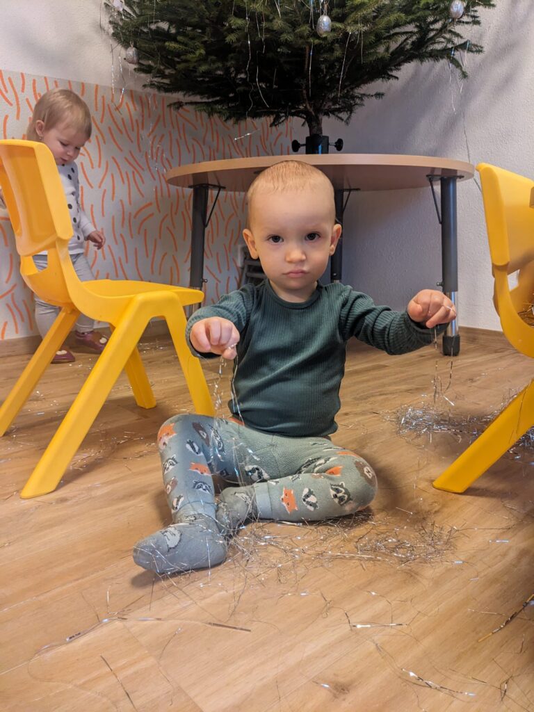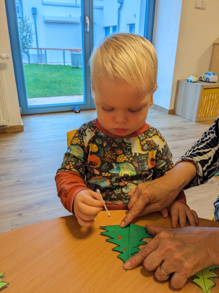 Aktivitou na prosinec byl tanec a nácvik pohybového vystoupení na naši vánoční besídku. Pilně jsme trénovali, přeříkávali básničky, učili se koledy a dětem se také poprvé u nás dostaly do ruky hudební nástroje. Bubínky, rolničky, dřívka, triangl, xylofon, rumba koule, a další krásně doplnily naše hudební snažení. S nástroji jsme také trénovali rytmus, soustředění a koordinaci.